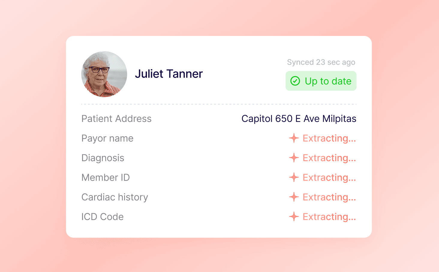 Real-time AI guidance for patients paired with automated risk flags and summaries for clinical teams.