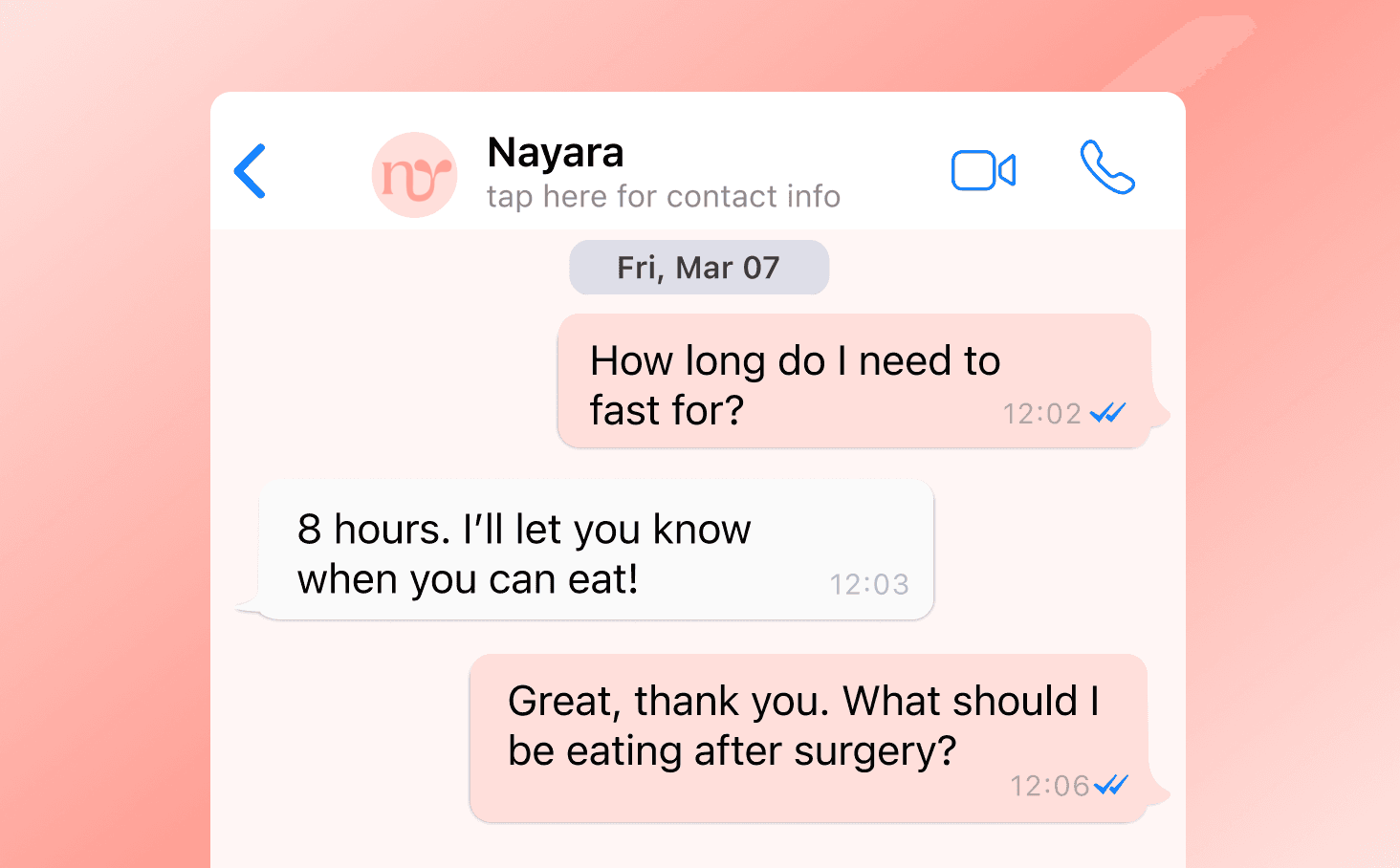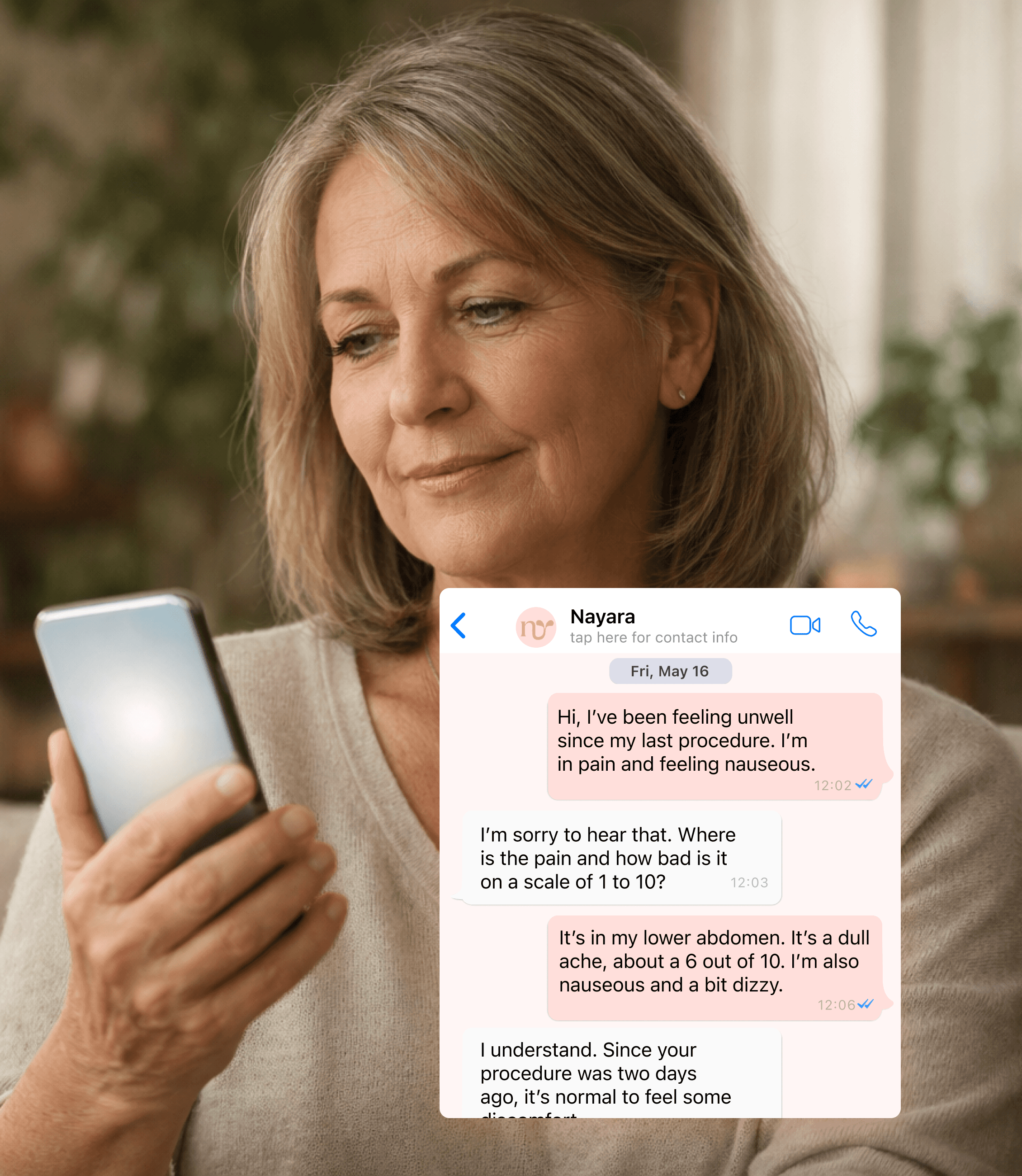 Eliminate the "Day-Of" Panic. Patients often panic about logistics when the clinic is closed. Nayara provides instant, protocol-specific answers to critical questions - like fasting rules or medication pauses, ensuring safety compliance and preventing last-minute cancellations due to simple errors.