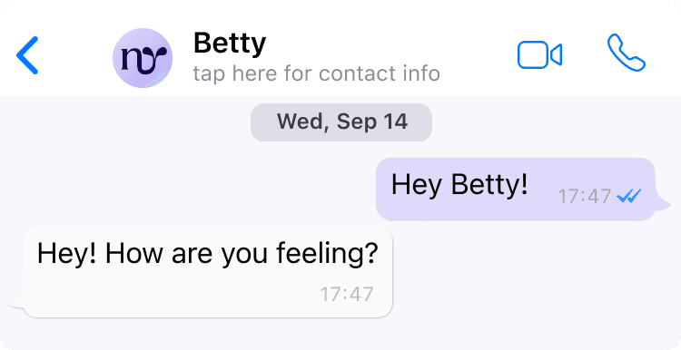 Begin your conversation with Betty through a simple text or WhatsApp message—no complicated setup required.