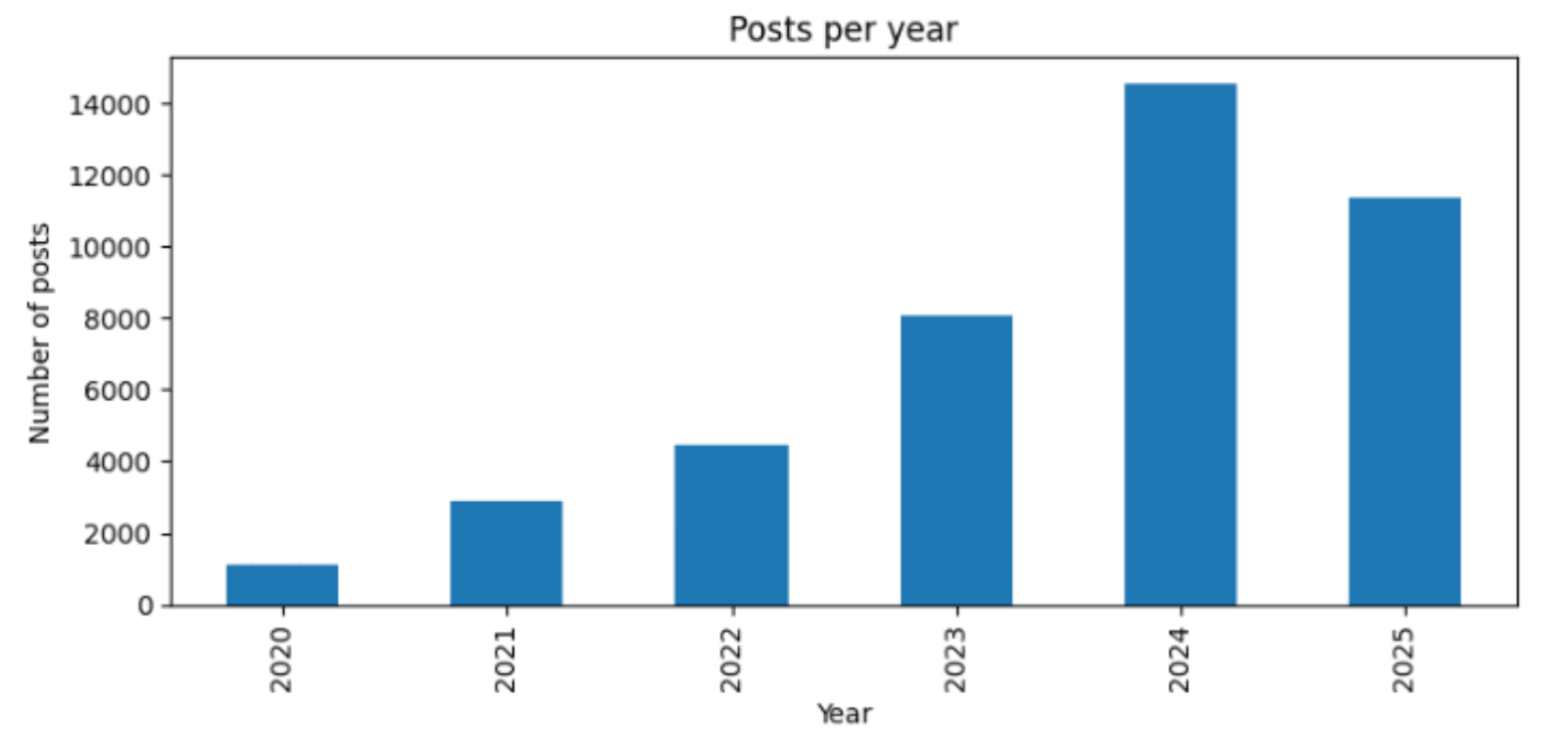 The r/breastcancer subreddit is a rapidly expanding space. Our analysis of posts and comments per year shows a community that has more than quadrupled in size since 2020. The number of posts peaked in 2024 at over 14,000, while comments surged to over 250,000 in the same year. This dramatic growth isn't just a matter of scale; it's a testament to the community's increasing importance. As the volume of comments outpaced posts, the subreddit evolved from a simple forum for questions to a dynamic, conversational support group where every question is met with a wave of empathy and shared knowledge.